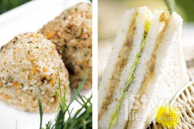 野餐的風(fēng)格很多,時(shí)下最流行的是低碳環(huán)保路線,可以自己在家做一些簡(jiǎn)單容易攜帶的食物,油炸、烘焙、涼拌的食物更加適合保存。比如三明治、壽司、沙拉、飯團(tuán)——彼得·梅爾曾經(jīng)說:美味的三明治是成功野餐的一半。而飯團(tuán),更是日本人野餐的最愛,在櫻花盛開的季節(jié),幾乎所有在櫻花樹下鋪開一張漂亮花布的賞櫻者,都會(huì)帶上手工制作的美味飯團(tuán)。除了食物的烹飪方式,食材的選擇也很重要,就拿壽司來說,魚生類壽司很容易因?yàn)闀r(shí)間和溫度的原因變質(zhì),而熟食做的壽司就可以保留得更好。朋友聚會(huì)的話,不妨規(guī)定每個(gè)人帶一個(gè)菜,互相分享。