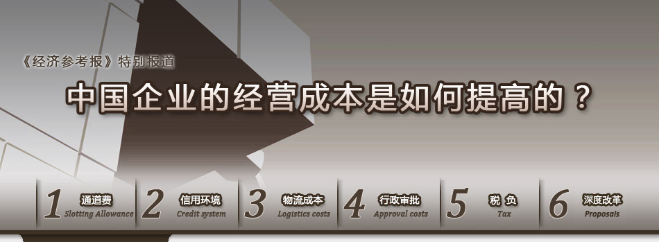 當前,在全球競爭越來越激烈的情況下,中國企業(yè)面臨的壓力日益增大,其中,企業(yè)經營成本高企是造成這種壓力的一個重要原因!督洕鷧⒖紙蟆酚浾呓丈钊胝{研發(fā)現,在原材料價格上漲,人力成本升高等外部因素之外,巨額通道費用、天價路橋費、愈演愈烈的“蓋章成本”等壓力正疊加作用于企業(yè),令其成本驟增、利潤大幅縮水。通過對中國企業(yè)經營成本增加圖景的鳥瞰,我們可以清晰地感受到:市場經濟在中國發(fā)展至今,其內在機制迫切需要再一次的優(yōu)化與升級。從今天起,本報深度版將以“中國企業(yè)的經營成本是如何提高的?”為主題,刊登一組分析報道,敬請讀者關注。 |
