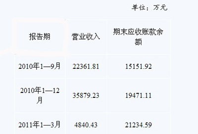 根據(jù)上述資料,劉先生算了一筆賬:截至2011年一季度末沃森生物賬齡1-6個月的應(yīng)收賬款余額為21234.59×92%=19535.82萬元。假設(shè)一季度營業(yè)收入全部形成應(yīng)收賬款,則2010年第四季度新形成的應(yīng)收賬款為19535.82-4840.43=14695.39萬元。而沃森生物去年第四季度實現(xiàn)營業(yè)收入為13517.42萬元(35879.23-22361.81)!拔稚锶ツ甑谒募径刃掳l(fā)生的應(yīng)收賬款竟然高于當(dāng)季的營業(yè)收入,另人匪夷所思。”劉先生說。