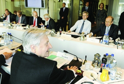 圖為:歐洲央行行長(zhǎng)特里謝在發(fā)言。