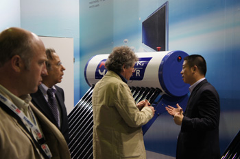 華揚(yáng)技術(shù)人員向外商介紹太陽(yáng)能產(chǎn)品。記者 王星橋