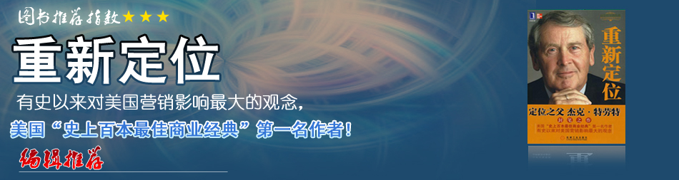 《重新定位》是特勞特先生40年商業(yè)經(jīng)驗(yàn)的結(jié)晶,是對(duì)定位理論的完善和創(chuàng)新。作為打造品牌的重要理論,此書的出版正逢中國(guó)企業(yè)亟須品牌的時(shí)候,對(duì)中國(guó)企業(yè)而言可謂及時(shí)雨。而中國(guó)巨大的市場(chǎng)潛力,也正好可以讓“重新定位”實(shí)現(xiàn)其意義,因?yàn)闊o論是“定位”還是“重新定位”,都需要踐行才能體現(xiàn)價(jià)值…[詳細(xì)]