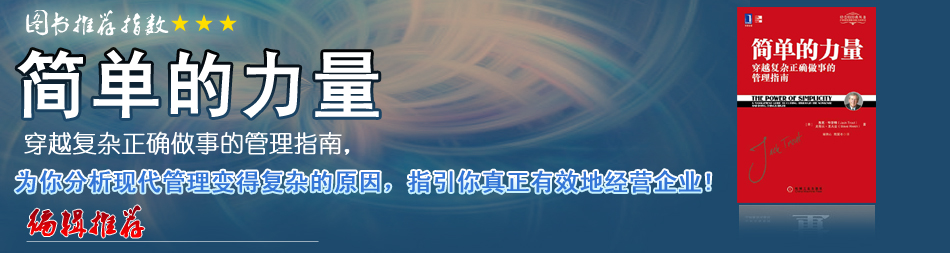 | 《簡單的力量》回歸常識,推崇簡單,從管理、領(lǐng)導(dǎo)、人員、市場等幾大方面給出“極簡主義”的建議。不過需要指出的是,這里的“簡單”可不是簡約、單調(diào),而是清楚明白、突出要點、直達(dá)心理。 |