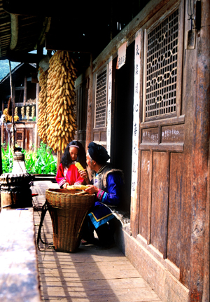 69歲的蘿卜寨羌族老人馬康全在新建成的家門口擇著豆角,他說:“現(xiàn)在的房子比以前的要好得多,保留了羌族風(fēng)格!