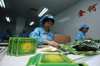 圖為青海金訶藏藥集團(tuán)的工人在對(duì)藥品進(jìn)行包裝。新華社記者 吳光于/攝 |
