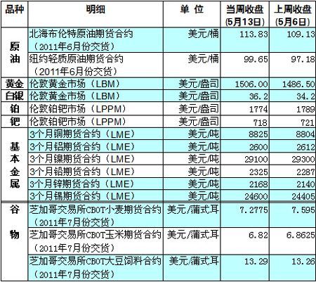 國際大宗商品期貨價格明細表[2011-05-16]