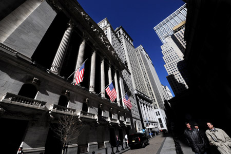 納斯達克(NDAQ)與洲際交易所集團(ICE)16日宣布,將收回對紐約證交所母公司紐約泛歐集團(NYSE Euronext)價值110億美元的收購要約,因為他們已意識到此項交易無法獲得監(jiān)管批準。 納斯達克與ICE周一表示,他們與美國司法部反壟斷部門就此項收購進行的談判宣告失敗。 這一決定為紐約泛歐集團與德國證交所進行此前宣布的價值100億美元的并購交易掃清了道路。 圖為行人從美國紐約證券交易所外經過。