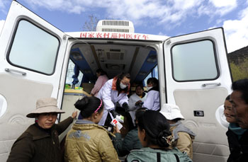 近年來,西藏衛(wèi)生事業(yè)發(fā)展迅速,廣大農(nóng)牧民身體健康水平和農(nóng)牧民醫(yī)療保健水平有了明顯的提高。圖為西藏林芝地區(qū)林芝縣八一鎮(zhèn)醫(yī)療衛(wèi)生院的巡回醫(yī)療車開進巴吉村,醫(yī)務人員在被稱作“農(nóng)村流動醫(yī)院”的醫(yī)療車里為該村的群眾看病,并免費發(fā)放急需藥品。記者