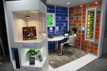 今年6月初,在由中國貿(mào)促會和日本經(jīng)濟團體聯(lián)合主辦的2011年中日綠色博覽會上(簡稱綠博會),索尼就展出了一系列新材料、新能源、節(jié)能、凈化等領(lǐng)域的尖端環(huán)境技術(shù)。其中,索尼打造的“未來房間”展示了可實現(xiàn)環(huán)境零負(fù)荷的未來概念生活景象:太陽能發(fā)電的窗戶(染料敏化太陽能電池)、利用粉碎的光盤制作房間的瓷磚墻壁、窗戶發(fā)電的電力可以儲存在墻壁上的儲能裝備中……