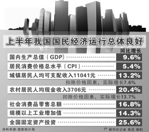 上半年“9.6%+5.4%”的組合,對(duì)于中國(guó)經(jīng)濟(jì)而言,不僅意味著經(jīng)濟(jì)增長(zhǎng)繼續(xù)保持穩(wěn)定,更意味著價(jià)格上漲將形成倒逼機(jī)制,加快結(jié)構(gòu)調(diào)整和發(fā)展方式轉(zhuǎn)變。