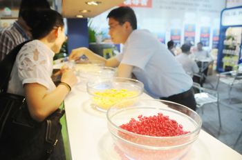 第46屆全國新特藥品交易會(huì)暨2011中國藥店展覽在南京開幕,來自全國40多家企業(yè)的100多個(gè)2008年后獲批的新藥齊聚南京。圖為交易會(huì)現(xiàn)場參展藥商展出的新藥。新華社發(fā)