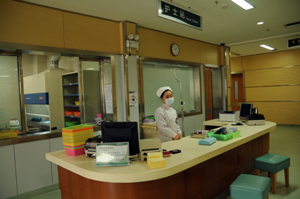中美合資杭州愛德醫(yī)院的護(hù)士站前冷冷清清,沒有其他公立三級醫(yī)院患者人滿為患的場景。 |