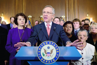據(jù)美國當(dāng)?shù)孛襟w7月31日?qǐng)?bào)道,美國兩黨在提高債務(wù)上限問題上接近達(dá)成協(xié)議,以免美國政府發(fā)生債務(wù)違約。兩黨領(lǐng)導(dǎo)人7月31日上午將對(duì)國會(huì)議員通告最新進(jìn)展,為接下來的投票做準(zhǔn)備。 圖為7月30日,在美國首都華盛頓的國會(huì)大廈,參議院民主黨領(lǐng)袖里德(前)出席新聞發(fā)布會(huì)。