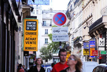 歐美債務(wù)危機支撐金價連破新高。8月8日,人們走過位于法國巴黎街頭的黃金交易所。記者 高靜 攝 |