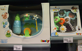 歐盟新版《玩具安全指令》規(guī)定,適用于3歲以下幼兒的玩具禁止使用容易被誤吞的小零件、小部件。在布魯塞爾的玩具商店里,適用于幼兒的不同玩具體積都比較大,適用于少兒以上的各種玩具才有大大小小的變化。