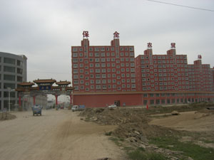 保全莊項(xiàng)目由15萬(wàn)平方米蔬菜交易市場(chǎng)以及15萬(wàn)平方米產(chǎn)權(quán)商鋪、住宅、公寓、商務(wù)寫(xiě)字樓組成。2008年上半年,該項(xiàng)目高調(diào)亮相,一度被捧為內(nèi)蒙古商業(yè)地產(chǎn)投資領(lǐng)域的“黑馬”!督(jīng)濟(jì)參考報(bào)》記者8月24日在現(xiàn)場(chǎng)看到,項(xiàng)目主體工程已基本完工,七個(gè)交易大廳被13幢商住樓、5棟商鋪圍成一圈。據(jù)相關(guān)人士介紹,該項(xiàng)目原來(lái)規(guī)劃建設(shè)冷鮮庫(kù)、深加工車間、倉(cāng)庫(kù)、物流配送中心、農(nóng)藥殘留檢測(cè)中心等配套設(shè)施,如今開(kāi)發(fā)商已無(wú)力再投資建設(shè),交易市場(chǎng)徒有一個(gè)“空殼子”,成了半拉子工程。