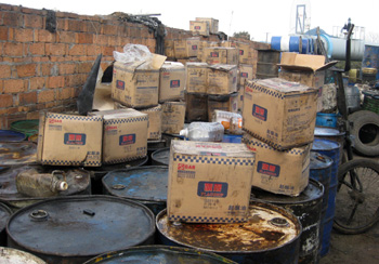 為牟取暴利,鄭州宏大糧油商行經(jīng)營(yíng)戶袁某把這些來(lái)路不正、自己不敢食用的油,批發(fā)給鄭州郊縣的一些糧油店,或者經(jīng)灌裝零售給周邊的賓館、飯店、工地食堂、夜排檔、油條攤。警方在搜查時(shí)還發(fā)現(xiàn),部分地溝油還被貼上某著名食用油品牌商標(biāo)。