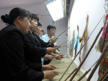 要拯救走“下坡路”的皮影戲,說(shuō)來(lái)容易干起來(lái)難。近幾年,一些老藝人由于身體原因退出舞臺(tái),年輕演員青黃不接,零散的兩三個(gè)劇團(tuán)也處在癱瘓狀態(tài)。為挽救這種局面,2009年1月,趙田在退休干部葉建國(guó)的支持下,組建了遷安市皮影藝術(shù)協(xié)會(huì),并創(chuàng)辦了謙御皮影藝術(shù)團(tuán),創(chuàng)建了遷安皮影活動(dòng)基地。