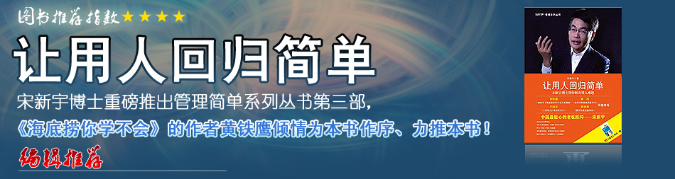 | 宋博士的書很不錯,與前兩本的風格是一樣的,基本特點就是實用、可操作性強,說教的成分少,言簡意賅。非常好的書,對管理者很有裨益,強烈推薦! |
