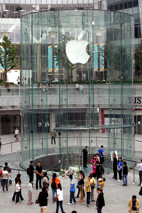 美國(guó)蘋果公司前首席執(zhí)行官史蒂夫·喬布斯逝世的消息引起全球關(guān)注和無(wú)數(shù)“蘋果迷”的哀思!耙?yàn)橛兴,枯燥的世界有了鮮活!本W(wǎng)民認(rèn)為,“蘋果教父”喬布斯的傳奇一生為世人留存了巨大的精神財(cái)富,最好的紀(jì)念方式無(wú)疑是將這些精神付諸于行動(dòng)。目前中國(guó)的創(chuàng)業(yè)者層出不窮,希望能夠?qū)W習(xí)和借鑒喬布斯的創(chuàng)新精神,從而激勵(lì)和推動(dòng)下一個(gè)“神話”的誕生。圖為顧客在上海浦東陸家嘴“蘋果”旗艦店前流連。記者