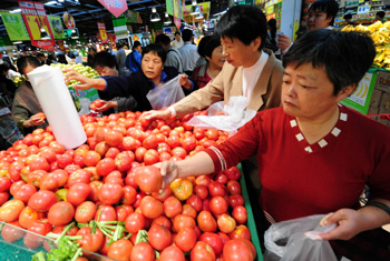 商務(wù)部25日公布的監(jiān)測數(shù)據(jù)顯示,食用農(nóng)產(chǎn)品價(jià)格繼續(xù)回落。截至上周(10月17日至23日),18種蔬菜平均批發(fā)價(jià)格比前一周下降2.5%,其中生菜、大白菜、白蘿卜降幅分別為8.8%、8.3%和8.3%,油菜、芹菜、西紅柿分別下降8.2%、8%和7.6%。雞蛋市場貨源充足,零售價(jià)格比前一周下降0.8%,降幅擴(kuò)大0.4個(gè)百分點(diǎn),比9月底下降1.6%。