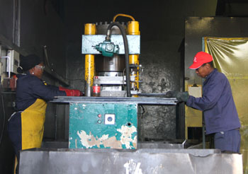 9月26日下午,記者來(lái)到約翰內(nèi)斯堡市區(qū)以北約25公里的萊澤工業(yè)園,約有上百家中小企業(yè)設(shè)在此處。萊澤金屬鍛壓公司就位于該園區(qū)。這是一家主要從事礦山輔助設(shè)備和民用鐵絲防護(hù)網(wǎng)制造的中型企業(yè),員工110人,其中100人為一線工人。