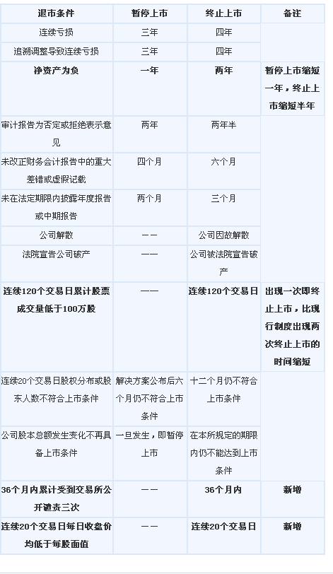 為避免創(chuàng)業(yè)板公司暫停上市以后通過各種調(diào)節(jié)財務(wù)指標(biāo)的方式規(guī)避退市,擬完善創(chuàng)業(yè)板公司恢復(fù)上市的審核標(biāo)準,對暫停上市公司恢復(fù)上市的財務(wù)標(biāo)準參照首次公開發(fā)行和再融資的計算方法,以扣除非經(jīng)常性損益前后的凈利潤孰低作為盈利判斷標(biāo)準。同時,不支持暫停上市公司通過借殼方式恢復(fù)上市。 縮短時間加快退市速度