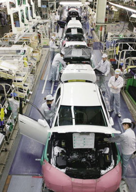 豐田汽車公司組裝生產(chǎn)線上的藍(lán)領(lǐng)工人