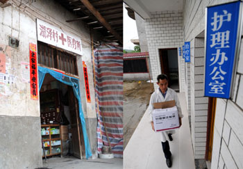地處偏遠山區(qū)的江西分宜縣湖澤鎮(zhèn)湖澤村衛(wèi)生院前身(左)和新建的湖澤村衛(wèi)生院,一名藥劑師在搬運藥品(右)。該村衛(wèi)生所未建之前狹小、陳舊,村民就醫(yī)環(huán)境差,現(xiàn)在讓村民足不出村就可享受到較好的醫(yī)療服務(wù)。記者