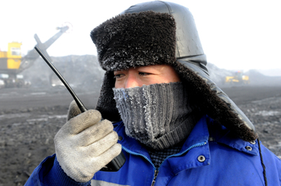 進(jìn)入1月下旬以來(lái),內(nèi)蒙古呼倫貝爾地區(qū)出現(xiàn)持續(xù)超低溫天氣,最低氣溫達(dá)到零下43度,并導(dǎo)致了罕見(jiàn)的“冰霧”現(xiàn)象,給生產(chǎn)和生活造成巨大影響。為保證本地區(qū)電廠和民用煤用戶的煤炭供應(yīng),神華集團(tuán)神寶能源公司啟動(dòng)應(yīng)急預(yù)案,確保煤炭生產(chǎn)高位安全運(yùn)行。圖為煤礦管理人員在現(xiàn)場(chǎng)組織指揮生產(chǎn)。