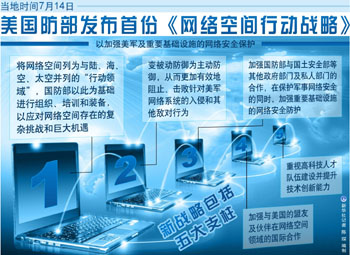 2010年5月美軍建立網(wǎng)絡(luò)司令部,據(jù)稱至少有3000名信息戰(zhàn)專家和八萬(wàn)名以上從事網(wǎng)絡(luò)戰(zhàn)、電子戰(zhàn)的人員,已研制出的網(wǎng)絡(luò)武器(如木馬病毒)超過(guò)2000種。2011年5月,白宮發(fā)布《網(wǎng)絡(luò)空間國(guó)際戰(zhàn)略》,宣稱美國(guó)將使用一切必要手段防御至關(guān)重要的網(wǎng)絡(luò)資產(chǎn),像對(duì)待其他任何威脅一樣,對(duì)網(wǎng)絡(luò)空間的敵對(duì)行為作出反應(yīng),并保留訴諸武力的權(quán)利。7月美國(guó)再次發(fā)布《網(wǎng)絡(luò)空間行動(dòng)戰(zhàn)略》,為其“防御”制定行動(dòng)指南。新戰(zhàn)略包括進(jìn)一步將網(wǎng)絡(luò)空間列為與陸、海、空、太空并列的“行動(dòng)領(lǐng)域”,變被動(dòng)防御為主動(dòng)防御,實(shí)際上明確了美國(guó)的網(wǎng)絡(luò)戰(zhàn)進(jìn)攻思想。