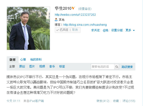 據(jù)媒體報(bào)道,證監(jiān)會(huì)主席郭樹(shù)清曾在上任不久后的一次內(nèi)部場(chǎng)合中提出“IPO不審行不行?”的疑問(wèn)。 對(duì)此,燕京華僑大學(xué)校長(zhǎng)華生14日發(fā)布微博稱(chēng):“媒體熱議IPO不審行不行,其實(shí)這是一個(gè)偽問(wèn)題:在現(xiàn)行市場(chǎng)框架下肯定不行。市場(chǎng)主義的嘩眾取寵可以贏些眼球,但給中國(guó)股市制造巧立名目的擴(kuò)容大躍進(jìn)對(duì)投資者只會(huì)是一場(chǎng)巨大的災(zāi)難。真問(wèn)題是為了IPO可以不審,我們先要做哪些制度設(shè)計(jì)和改變?不過(guò)現(xiàn)在有誰(shuí)會(huì)去想這種艱難又吃力不討好的問(wèn)題呢?”