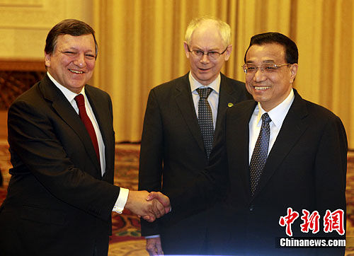 中國國務(wù)院副總理李克強(qiáng)15日在北京人民大會(huì)堂會(huì)見歐洲理事會(huì)主席范龍佩和歐盟委員會(huì)主席巴羅佐。 李克強(qiáng)表示,中國和歐盟是國際舞臺(tái)上兩支重要戰(zhàn)略力量,也是重要的全面戰(zhàn)略伙伴,日益成為前進(jìn)道路上的利益共同體。去年我訪問了歐洲三國,同多位歐洲領(lǐng)導(dǎo)人會(huì)見會(huì)談,直接感受到歐方高層對(duì)發(fā)展對(duì)華關(guān)系的高度重視、企業(yè)界對(duì)擴(kuò)大合作的強(qiáng)烈愿望、民眾對(duì)增進(jìn)相互了解與友誼的殷切期待,展現(xiàn)出中歐關(guān)系的良好基礎(chǔ)和廣闊前景。 李克強(qiáng)說,當(dāng)前,中歐關(guān)系發(fā)展正進(jìn)入新的關(guān)鍵時(shí)期,希望雙方以這次達(dá)成的重要共識(shí)為新起點(diǎn),提升政治互信水平,充實(shí)戰(zhàn)略合作內(nèi)涵,相互尊重、平等相待、開放包容、相互支持,為推動(dòng)建設(shè)和平、合作、發(fā)展的21世紀(jì)共同努力。 李克強(qiáng)指出,中國正在加快轉(zhuǎn)變經(jīng)濟(jì)發(fā)展方式,保持經(jīng)濟(jì)平穩(wěn)較快發(fā)展,這將為中歐合作提供更多機(jī)遇。雙方應(yīng)緊扣各自發(fā)展戰(zhàn)略,發(fā)揮互補(bǔ)優(yōu)勢,做好做實(shí)經(jīng)貿(mào)、金融、能源、城鎮(zhèn)化、科技創(chuàng)新、人文等各領(lǐng)域合作,實(shí)現(xiàn)互利共贏。中方相信歐洲能克服當(dāng)前困難,并將繼續(xù)參與和支持有關(guān)各方為解決歐債問題所做的努力。 范龍佩和巴羅佐表示,中國的發(fā)展對(duì)歐洲是機(jī)遇,歐方愿進(jìn)一步加強(qiáng)同中方的務(wù)實(shí)合作,更好地?cái)U(kuò)大雙方利益,實(shí)現(xiàn)各自良好發(fā)展,推動(dòng)歐中關(guān)系邁上更高水平,并為促進(jìn)世界經(jīng)濟(jì)發(fā)展和穩(wěn)定發(fā)揮作用。