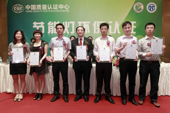 5月15日,中國(guó)質(zhì)量認(rèn)證中心頒發(fā)我國(guó)首批節(jié)能燈環(huán)保認(rèn)證證書。記者 任正來/攝 |