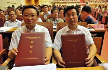 “以藥養(yǎng)醫(yī)”是導(dǎo)致“看病貴”、濫用抗生素等問題的重要原因之一。北京市醫(yī)改辦日前宣布,將在北京友誼醫(yī)院試點(diǎn)醫(yī)藥分開,取消藥品加成,建立醫(yī)事服務(wù)費(fèi)制度,既不讓醫(yī)院收入減少,又能遏制醫(yī)院多賣藥的利益驅(qū)動。圖為北京市區(qū)縣政府代表展示簽訂的《北京市深化醫(yī)藥衛(wèi)生體制改革2012年主要工作任務(wù)責(zé)任書》。記者 李文/攝 |