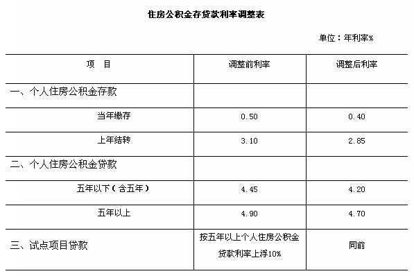 關(guān)于調(diào)整住房公積金存貸款利率的通知