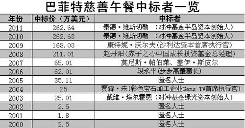 Wollensky牛排館共進(jìn)午餐。在過去的12年內(nèi),巴菲特慈善午餐拍賣所籌集的善款已經(jīng)超過了1100萬美元,這些資金都捐贈(zèng)給了慈善基金會(huì)Glide