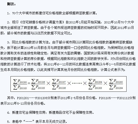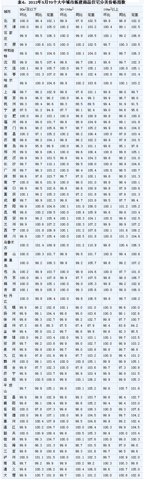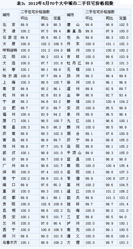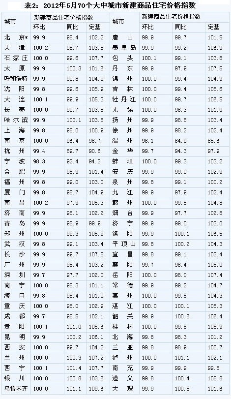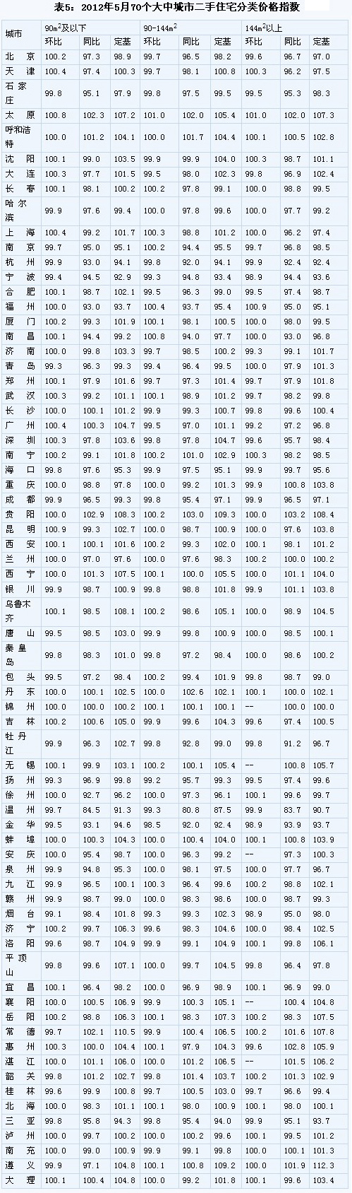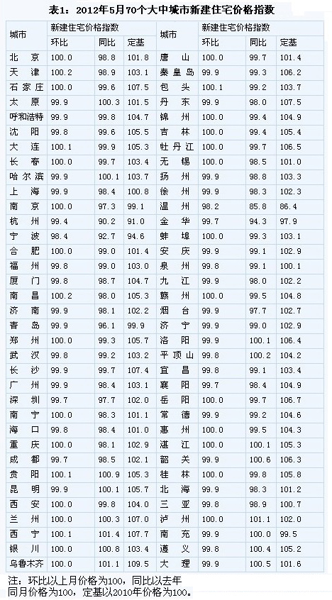 2012年5月份70個大中城市住宅銷售價格變動情況