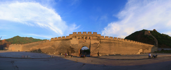大境門(mén)位于張家口市區(qū)北端,高聳入云的東、西太平山之間,是一座聞名遐邇的長(zhǎng)城關(guān)隘,扼邊關(guān)之鎖鑰,形勢(shì)險(xiǎn)要,歷來(lái)為兵家必爭(zhēng)之地。門(mén)楣上有察哈爾都統(tǒng)高維岳(當(dāng)時(shí)的地方軍政首腦)于1927年書(shū)寫(xiě)的四個(gè)蒼勁壯觀大字:“大好河山”。