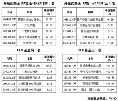 除此之外,64只封閉式基金平均凈值增長7.81%;79只貨幣市場基金平均凈值增長2.20%,折算年平均收益率超過4%;21只保本型基金平均凈值上漲3.55%;51只QDII平均凈值則下跌了1.59%,成為了各類基金產(chǎn)品中為一整體出現(xiàn)下跌的類型。