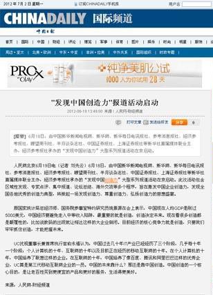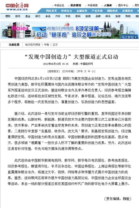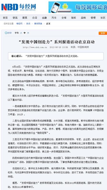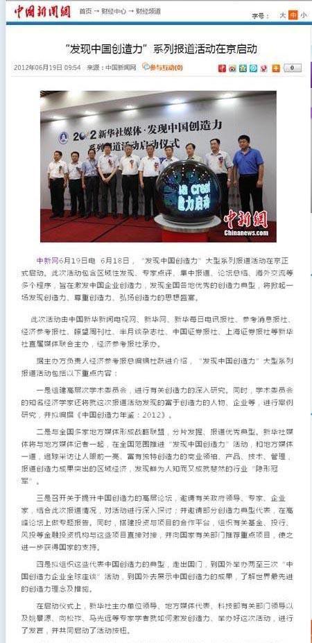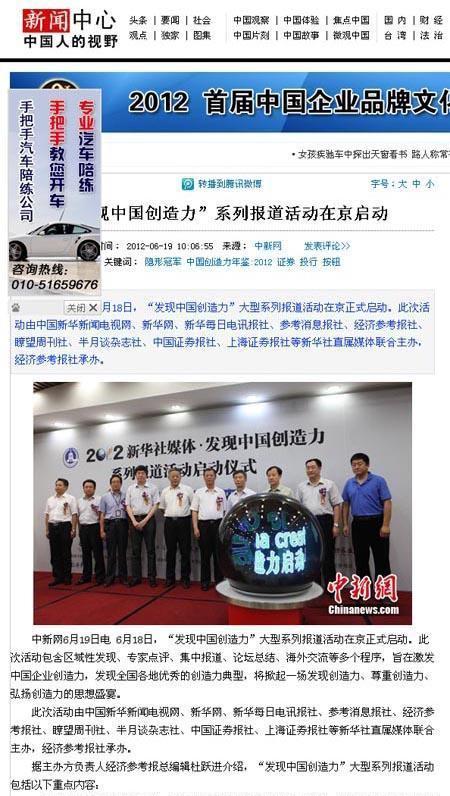 中國新聞網(wǎng)中國網(wǎng)等對“發(fā)現(xiàn)中國創(chuàng)造力”系列報道活動啟動的報道