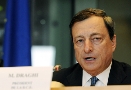 歐洲央行行長(zhǎng)德拉吉9日在布魯塞爾就當(dāng)前歐元區(qū)經(jīng)濟(jì)形勢(shì)和歐洲央行貨幣政策向歐洲議會(huì)經(jīng)濟(jì)與貨幣事務(wù)委員會(huì)作證。德拉吉重申,歐洲央行將采取一切手段捍衛(wèi)歐元。