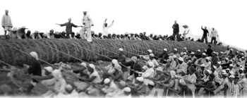 1958年11月15日,根據(jù)“五七”規(guī)劃,總干渠土方工程開工,巴彥淖爾盟(時稱,現(xiàn)巴彥淖爾市)2.3萬勞動大軍開到了總干渠的工地現(xiàn)場,開始了總干渠土方工程的施工。當(dāng)時的民工在幾乎沒有任何機械作業(yè)的情況下,黨員干部帶頭大干苦干,領(lǐng)導(dǎo)群眾齊上陣,靠著人挖肩挑10年時間,終于開挖出了總長230公里的總干渠。從此,河套灌區(qū)結(jié)束了自流引水的歷史,被群眾稱為“二黃河”的總干渠從此開始惠及世世代代的河套人民。前輩們不僅完成了一次歷史性壯舉,更給后人留下了一種精神——“總干”精神。
