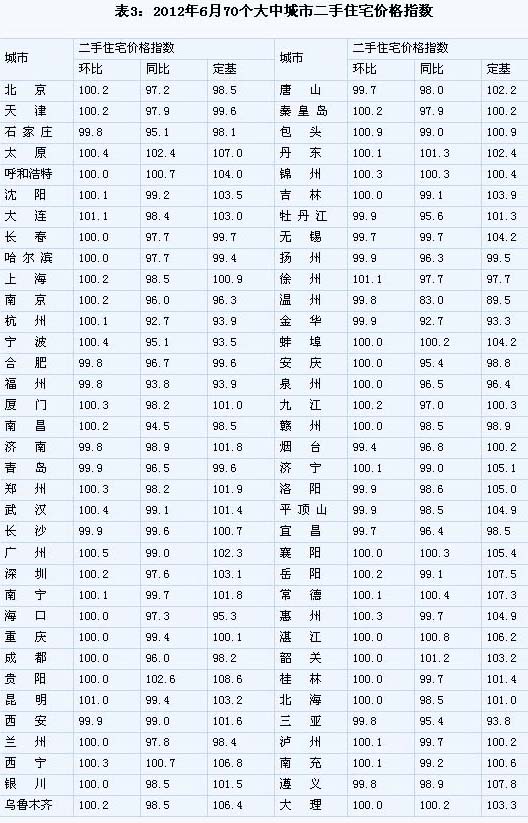 (二)與去年同月相比,70個(gè)大中城市中,價(jià)格下降的城市有58個(gè),上漲的城市有12個(gè)。6月份,同比價(jià)格上漲的城市中,漲幅均未超過2.6%,漲幅比5月份回落的城市有8個(gè)。
