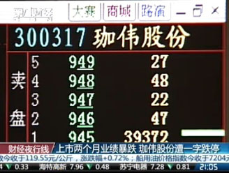 揚(yáng)韜:珈偉股份今年5月11日才上市,一個(gè)多月后,公司預(yù)告上半年利潤(rùn)同比下滑95%,股價(jià)直接跌停。公司給的理由是美國(guó)天氣不好,導(dǎo)致銷售下滑所以利潤(rùn)不濟(jì)。這還是新股嗎?這是“假偽股份”啊。