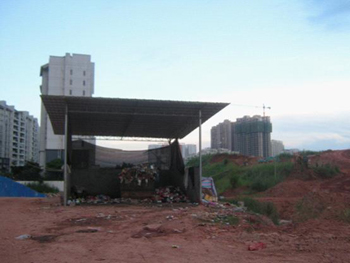 翡翠園小區(qū)是南寧市核心主干道民族大道沿路上一個較早建起的樓盤。小區(qū)業(yè)主反映,從2004年開始沿大門口進入小區(qū),必經(jīng)之路就是一個露天的垃圾站,小區(qū)生活垃圾就這樣曝曬在生活區(qū)中。今年4月中旬,大門口這片露天垃圾中轉(zhuǎn)站轉(zhuǎn)移到了小區(qū)二期!