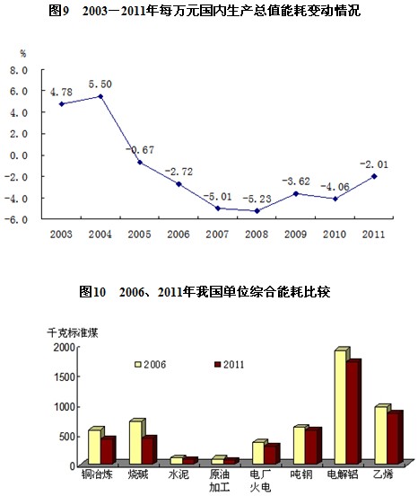 黨的十六大以來,建設(shè)資源節(jié)約型、環(huán)境友好型社會成為加快轉(zhuǎn)變經(jīng)濟(jì)發(fā)展方式、調(diào)整經(jīng)濟(jì)結(jié)構(gòu)的重要著力點(diǎn),節(jié)能減排、生態(tài)建設(shè)和環(huán)境保護(hù)力度明顯加大!笆晃濉币(guī)劃綱要第一次把節(jié)能減排列為約束性指標(biāo),經(jīng)濟(jì)可持續(xù)發(fā)展能力不斷增強(qiáng)。單位國內(nèi)生產(chǎn)總值能耗大幅下降。隨著國家和各地區(qū)節(jié)能降耗工作力度的不斷加大,各項(xiàng)政策措施逐步深入落實(shí),節(jié)能降耗取得明顯成效。2011年,單位國內(nèi)生產(chǎn)總值能耗比2002年下降12.9%。2011年,單位銅冶煉綜合能耗比2006年下降28.3%,燒堿生產(chǎn)綜合能耗下降38.8%,水泥綜合能耗下降26.8%,原油加工單位綜合能耗下降25.3%,電廠火力發(fā)電標(biāo)準(zhǔn)煤耗下降16.1%,鋼綜合能耗下降6.6%,電解鋁綜合能耗下降10.1%,乙烯生產(chǎn)綜合能耗下降11.0%。高耗能行業(yè)發(fā)展得到抑制,部分落后產(chǎn)能逐步淘汰。為抑制高耗能行業(yè)盲目擴(kuò)張,黨的十六大以來,我國對高耗能行業(yè)中淘汰類、限制類企業(yè)實(shí)行差別電價(jià),并不斷提高加價(jià)標(biāo)準(zhǔn)。出臺支持節(jié)能的稅收優(yōu)惠政策,對貸款實(shí)行差別定價(jià),嚴(yán)控對高耗能、高污染企業(yè)的信貸投入,加大對環(huán)保企業(yè)和項(xiàng)目的信貸支持,改善環(huán)保領(lǐng)域的直接融資服務(wù),大幅增加對節(jié)能減排的投入。六大高耗能行業(yè)增長明顯減緩。2005-2011年,規(guī)模以上工業(yè)中,六大高耗能行業(yè)工業(yè)增加值平均增長14.5%,低于規(guī)模以上工業(yè)增加值平均增速0.5個(gè)百分點(diǎn)。污染物排放總量得到控制,環(huán)境質(zhì)量持續(xù)改善。2010年,化學(xué)需氧量和二氧化硫排放量比2005年分別下降12.45%和14.29%。2011年末,城市污水處理廠日處理能力達(dá)11255萬立方米,比2002年末增長2.1倍;城市污水處理率達(dá)到82.6%,提高42.6個(gè)百分點(diǎn)。2011年,七大水系的水質(zhì)監(jiān)測斷面中,Ⅰ~Ⅲ類水質(zhì)斷面比例占56.3%,比2005年提高15.3個(gè)百分點(diǎn)。在監(jiān)測城市中空氣質(zhì)量達(dá)到二級以上(含二級)標(biāo)準(zhǔn)的城市占監(jiān)測城市數(shù)的88.8%,比2005年提高28.7個(gè)百分點(diǎn)。