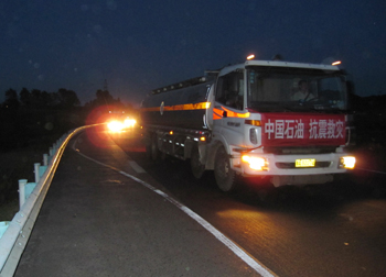圖為中石油貴州運輸公司連夜向地震災區(qū)運送油品。中石油集團公司 供圖 |