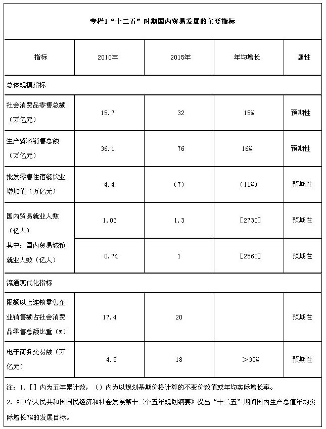 國(guó)內(nèi)貿(mào)易發(fā)展“十二五”規(guī)劃
