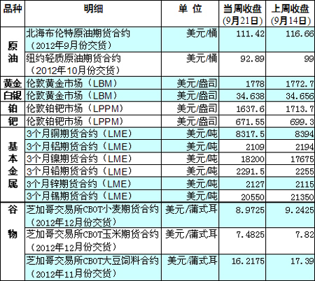 國際大宗商品期貨價格明細表[2012-09-17]